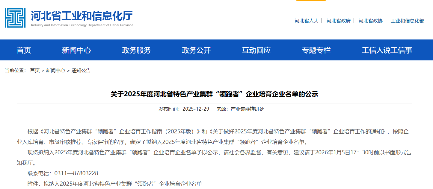 《河北省特色產業集群“領跑者”企業培育工作指南(2025版)》指出,“領跑者”企業主要是指特色產業集群內創新能力強、發展潛力大、質量效益優,專注集群主導產品相關工業領域細分行業,具備引領帶動集群高質量發展能力的企業。
