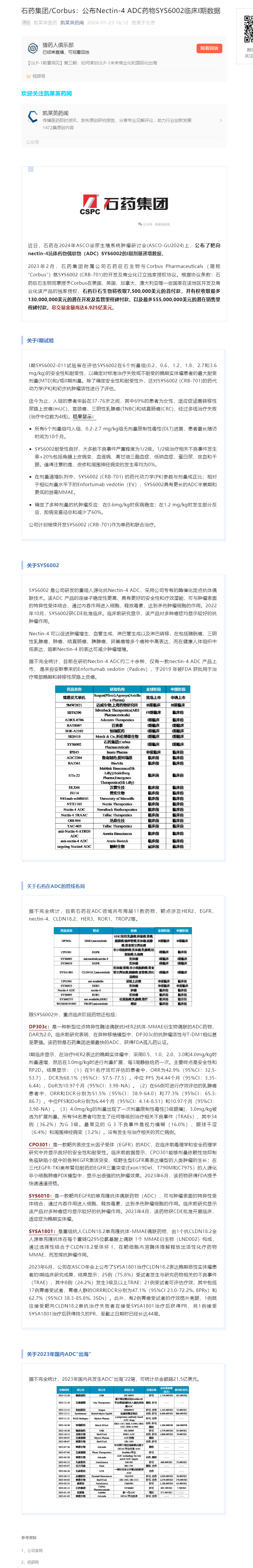 石藥集團/Corbus:公布Nectin-4 ADC藥物SYS6002臨床I期數(shù)據(jù)