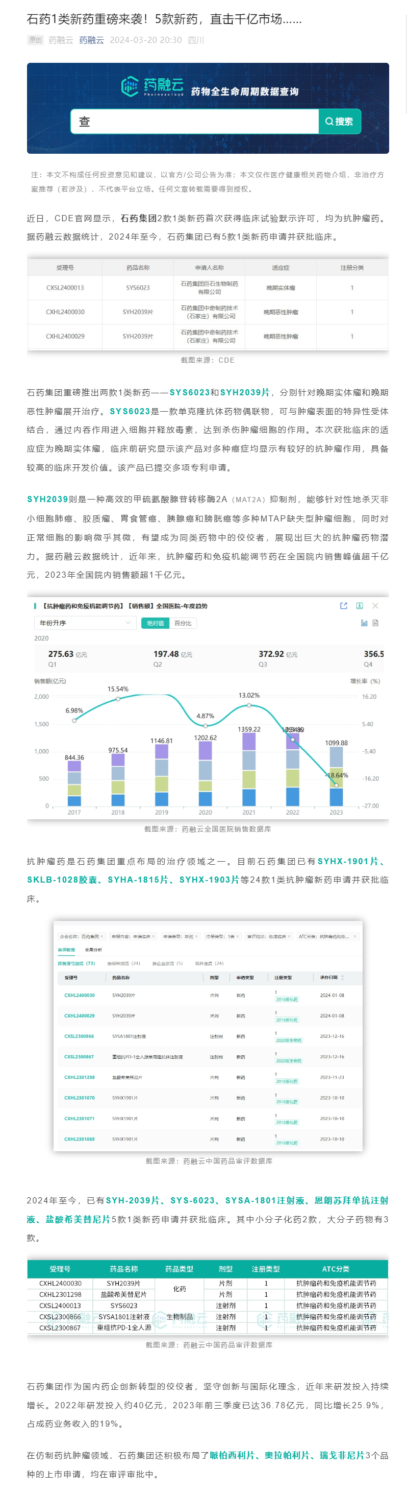 石藥1類新藥重磅來襲!5款新藥,直擊千億市場……
